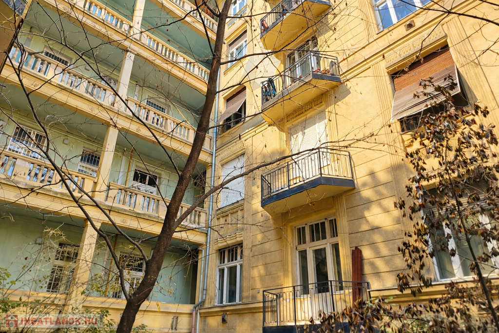 A lakás egyik különlegessége a kb. 3 m²-es erkély, amely a csendes, rendezett, fákkal teli belső udvarra néz.
