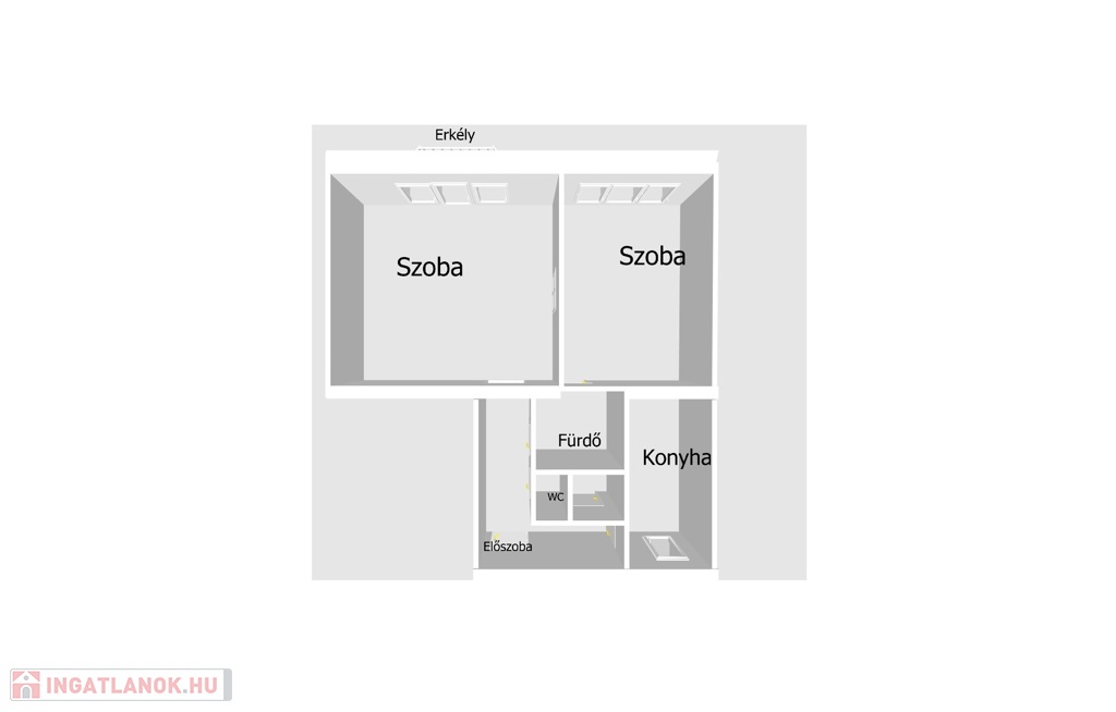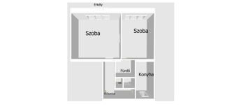 A lakás jelenleg két szobás, azonban a jelenlegi udvari konyhából kialakítható egy kisebb hálószoba, így akár két háló + amerikai konyhás nappali elrendezés is létrehozható.