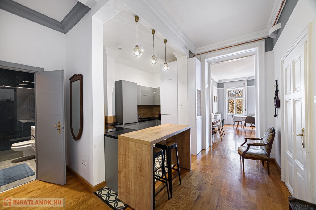 Megvételre kínálok egy a Károlyi kertre panorámás, 128nm-es, nappali + 3 háló, 2 fürdőszobás, 2019-ben felújított nagypolgári lakást. Az ingatlan cirkófűtéses és légkondicionált.