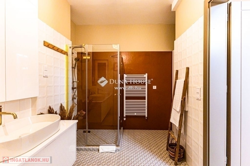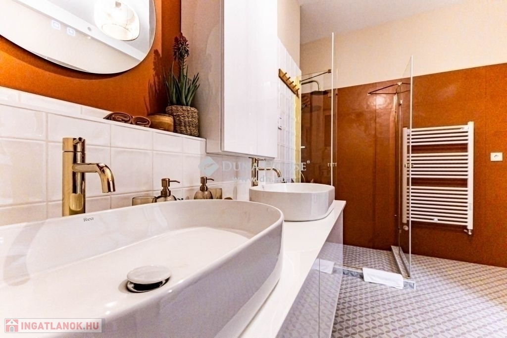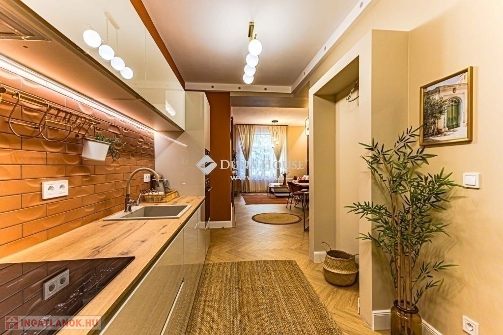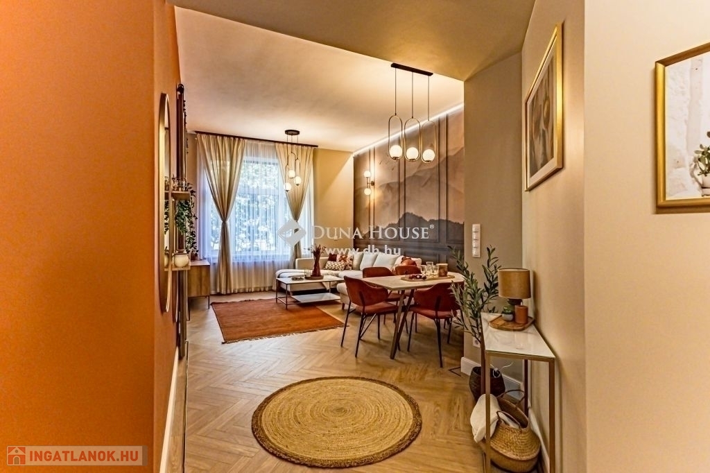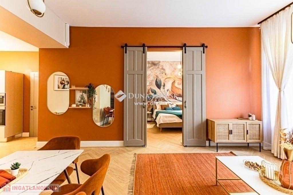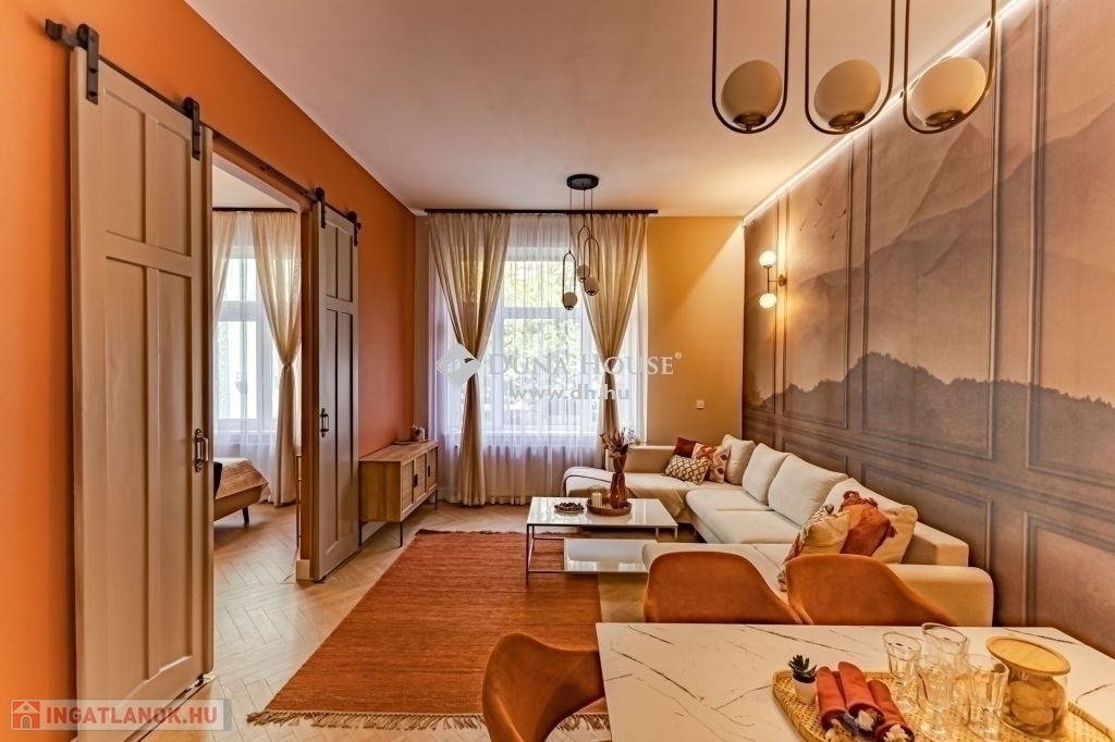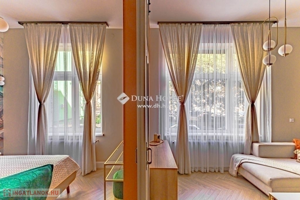 . A lakás tulajdoni lap szerint 92 nm melyet két lakássá bontottak, ennek eredménye, egy közel 75 nm, és egy 18 nm alapterületű lakás került kialakításra. Jelen hirdetésben szereplő 75 nm lakrészt kínáljuk eladásra.A lakást, a mostani tulajdonos az alapokig visszabontotta, és minden elemében megújította. Ennek köszönhetően, két hálószoba és tágas nappali került kialakításra.A terekre jellemző, hogy a mind a fő mind a második hálószoba is közel 15 nm; a fő hálószobából leválasztottak egy Gardrobe helyiséget. A nappali tágas világos, magában foglalja az étkezőt is, a konyha a tágas közlekedő részen kapott helyet, ahonnan a Fürdő és az udvari tájolású hálószoba is megközelíthető.A felújítás során magas minőségű anyagok kerültek beépítésre, mind a szaniterek, mind a nyílászárók tükrözik azt az igényességet, amelyet a Home Staging során kiválasztott bútorok és berendezési tárgyak egészítenek ki és teszik harmonikus otthonná. A lakás teljes bútorzattal, és berendezési tárgyakkal együtt megvásárolható.A házban a rövidtávú kiadást mostani tudásunk szerint a ház nem engedélyezi, a kisebbik lakrész jelen pillanatban is ki van adva hosszú távra. Igény esetén az is megvásárolható, külön megállapodás alapján.Jöjjön el nézze meg.