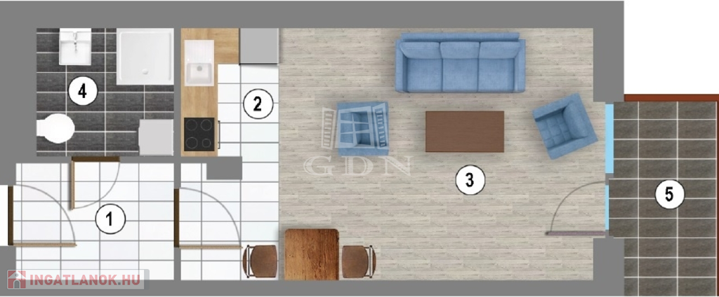 • Fsz.: 1 db lakás, garázs (5 db), tárolók (4 db), kukatároló