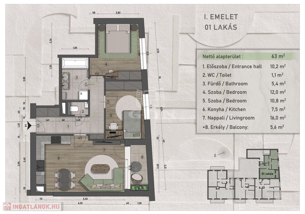 • Magas hozamú befektetés: keresett lokáció, erős bérleti piac