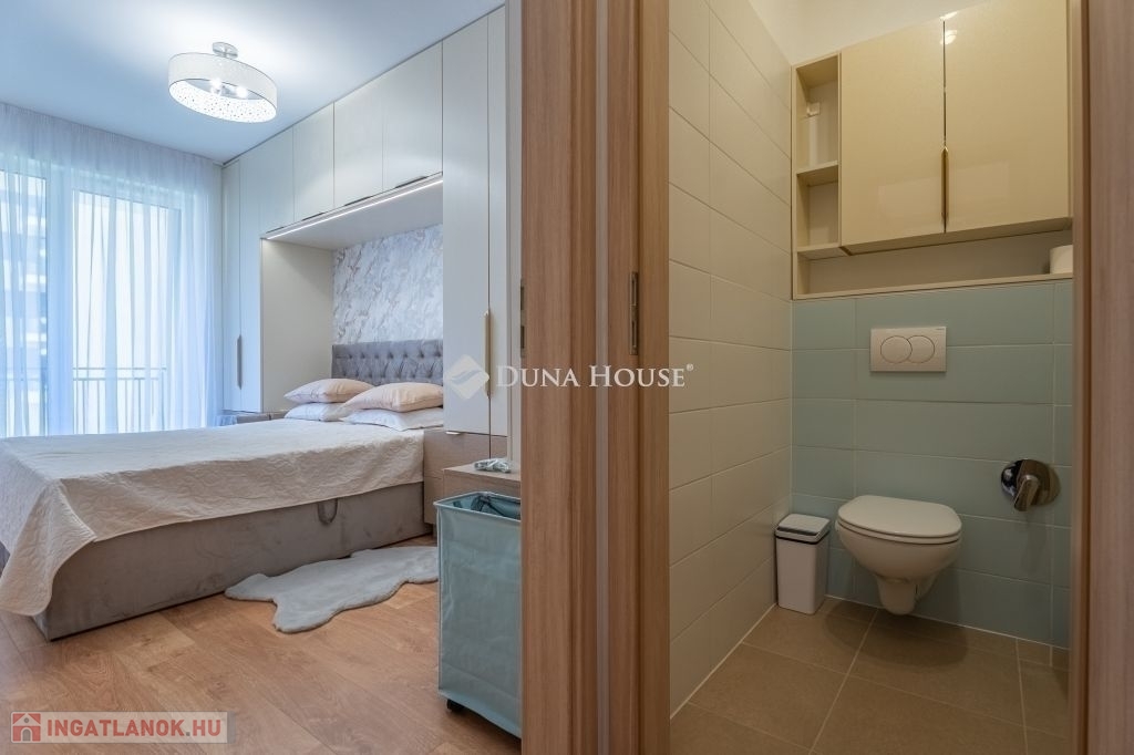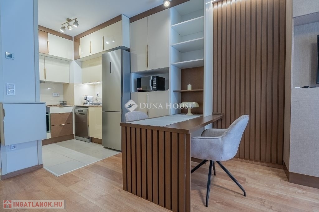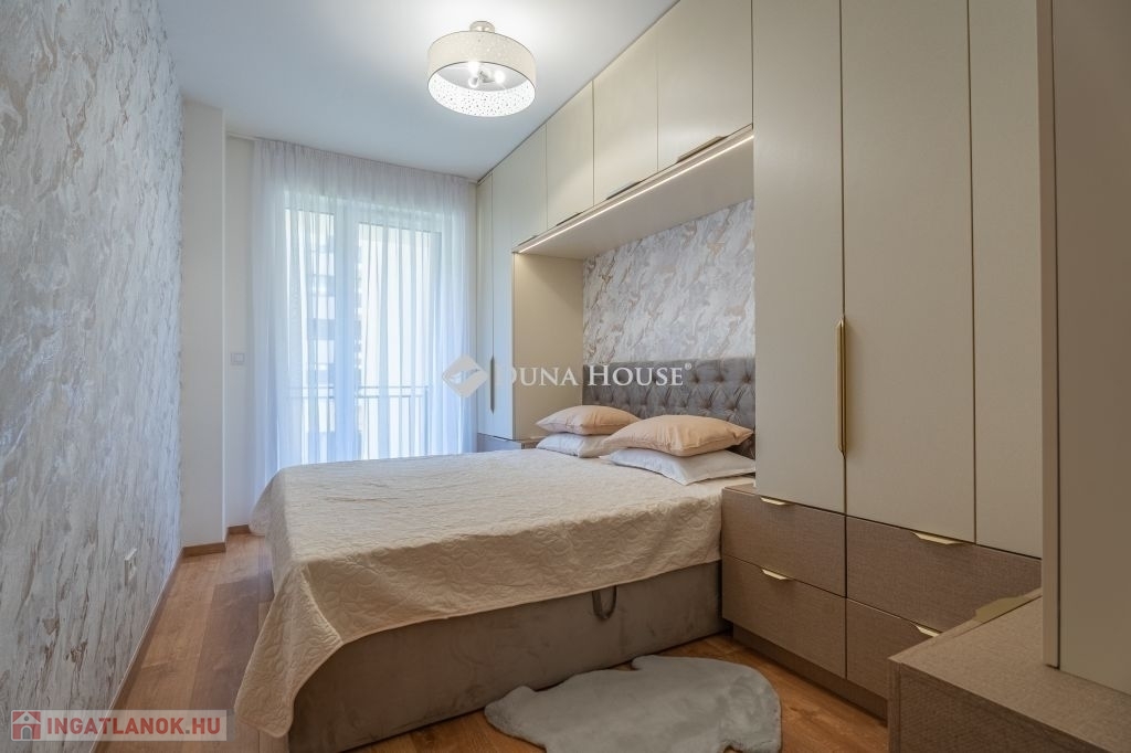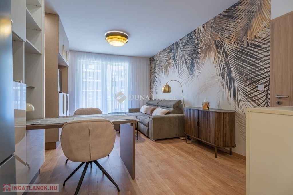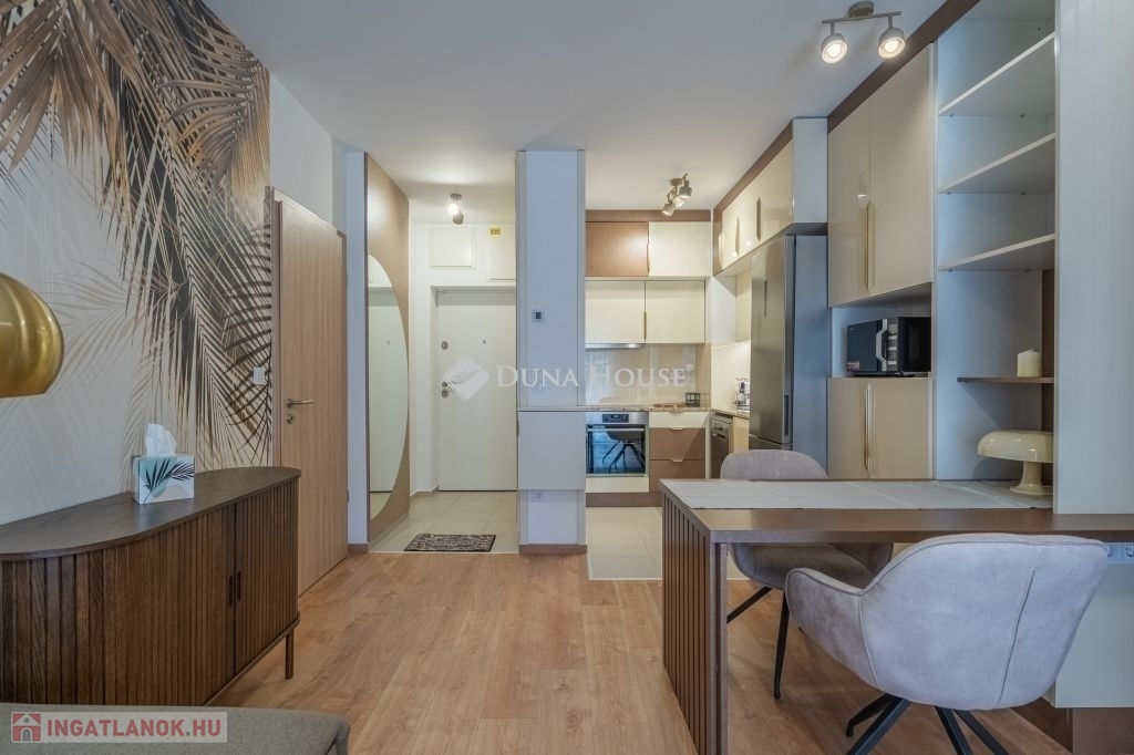 West Side Gardenben – stílusos, azonnal költözhető lakás a XIII. kerület szívében!A XIII. kerület legújabb lakóparkjában, a Big George által fejlesztett West Side Gardenben kínálok eladásra egy 1. emeleti, 45 m²-es, igényesen kialakított, ízléses otthont.A belső terek megkomponálását profi tervező végezte, ahol a meleg bézs árnyalatok, a minőségi burkolatok és a harmonikus anyaghasználat gondoskodnak az időtálló, elegáns hangulatról. Minden részlet a kényelmet és az esztétikát szolgálja.Főbb jellemzők:Világos, amerikai konyhás nappali, gépesített konyhával, gránit munkalappalÖsszehangolt belsőépítészeti koncepció, modern bútorzattalOkosotthon vezérlés, mennyezeti hűtés-fűtésHő- és hangszigetelt nyílászárók, elektromos redőnyök, szúnyoghálóTágas terasz, amely a csendes, parkosított belső kertre nézNagyobb méretű teremgarázs beálló és tároló a vételáron felül kötelezően megvásárolandó!A West Side Garden kiváló elhelyezkedéssel bír: a Váci út, Duna Pláza, metró, irodaházak és rekreációs lehetőségek egyaránt pár perces sétával elérhetők, miközben a zöld, belső udvar nyugodt életteret biztosít.Ideális választás azok számára, akik egy letisztult, modern otthonban képzelik el a mindennapjaikat – kompromisszumok nélkül.
