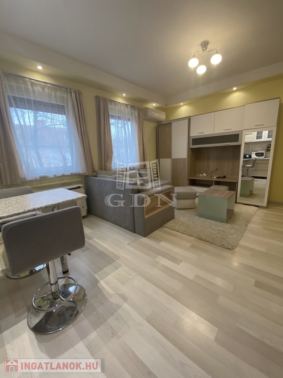A világos nappali amerikai konyhával és étkezőrésszel kényelmes, jól élhető teret biztosít, az ablakos fürdőszoba káddal, a külön WC és a beépített gardróbos hálószoba pedig praktikus elrendezést ad.