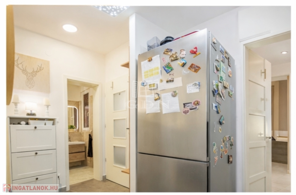 - A 2021-ben teljes körűen felújított ingatlan nyugati tájolásának és átgondolt elrendezésének köszönhetően világos, kényelmes otthont kínál. A bejárat saját használatú lépcsősoron keresztül, külön előtéren át közelíthető meg, ami nyugodt, elszeparált életteret biztosít.
