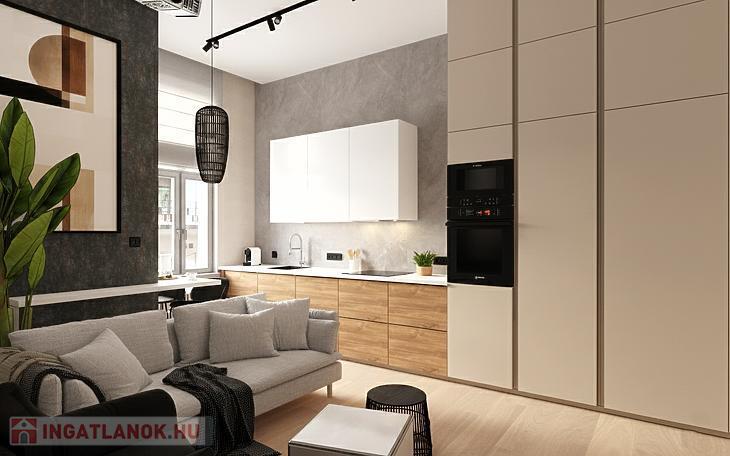 Eladó Budapest XIII. kerületében, a Radnóti Miklós utcában egy rendezett, liftes, akadálymentesített, belsőkertes társasház 3. emeletén található, teljes körűen felújított lakás. A korszerűsítés során megtörtént a teljes vezetékcsere, új nyílászárók kerültek beépítésre, modern fűtésrendszer készült, valamint gépesített konyhabútor is beépítésre került. Az amerikai konyhás nappali és a külön nyíló hálószoba praktikus, kényelmes elrendezést biztosít. Magas emeleti elhelyezkedése miatt a lakás világos, napos. A munkálatok várható befejezése: március 30. A képek látványtervek, a kivitelezés azok alapján készül. A beépített bútorok és a műszaki tartalom a vételár részét képezik. Az ingatlan ügyvédi megosztással jött létre (egy nagyobb lakás kettéosztásával), külön bejárattal és külön mérőórákkal rendelkezik. Per- és tehermentes. A környék rendezett, a közlekedés kiváló, közelben a Westend, éttermek, M3-as metró, 4-6 villamos és számos buszjárat. Kérdés, illetve megtekintési szándék esetén hívjon minket bizalommal! OSP hitel ehhez az ingatlanhoz nem vehető igénybe!