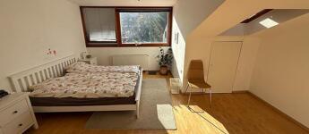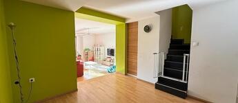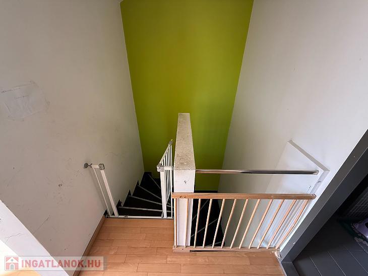 A szigetelt ház 2 lakásos, 3 szintes, amelyből az eladásra kínált lakás a felső két szinten helyezkedik el. A lakás 6 szobával rendelkezik, amelyből az első emeleten található egy nappali + 2 szoba, a többi szoba a második emeleten helyezkedik el.