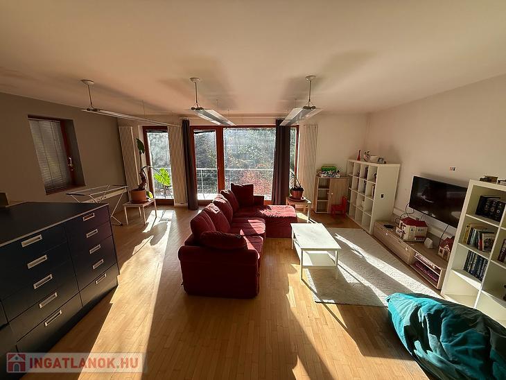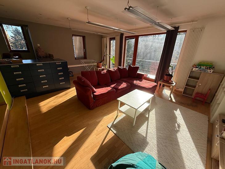 Eladásra kínálunk egy csendes, jó állapotú, 159 nm-es + 15 nm-es teraszos, belső kétszintes, világos, panorámás lakást Németvölgy frekventált részén, a Fürj utcában.