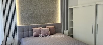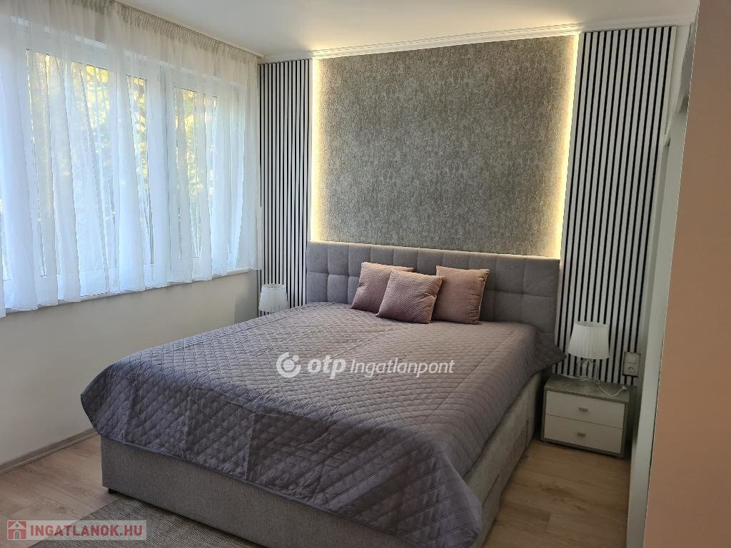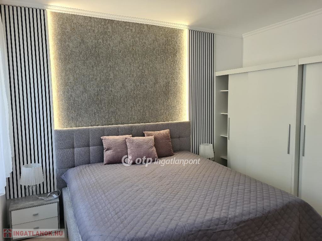 Hálószoba: ágyneműtartós franciaágy, éjjeliszekrények, gardrób és komód