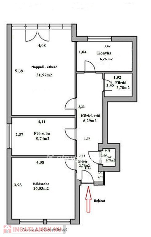 nappali-étkezős plusz 2 hálószobás lakást.