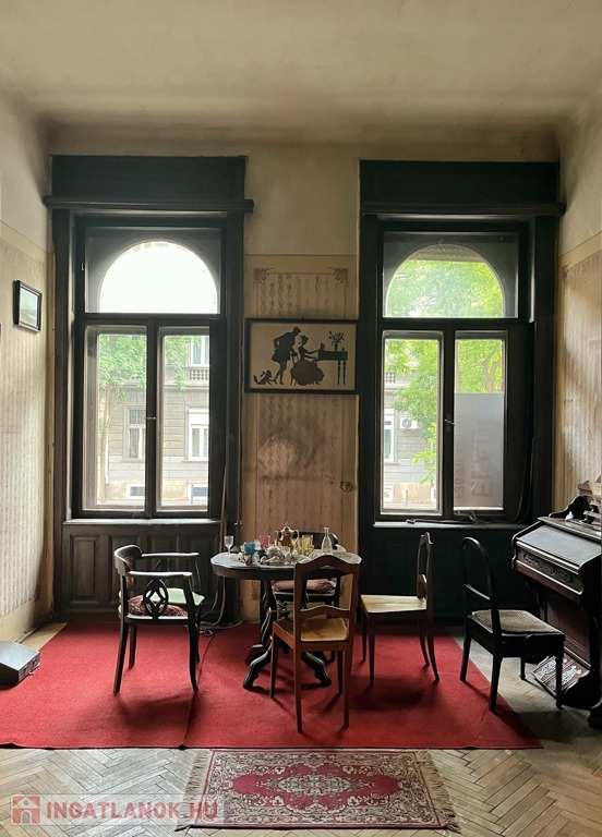 A lakásban eredeti burkolatok, cserépkályha és részben felújított nyílászárók találhatók, amelyek a polgári hangulatot tovább erősítik.