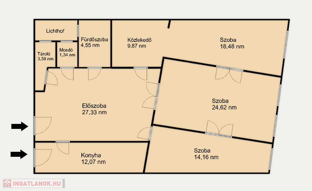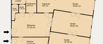 Az alaprajz a jelenlegi állapotot mutatja, tájékoztató jellegű, az átalakítás lehetősége adott.