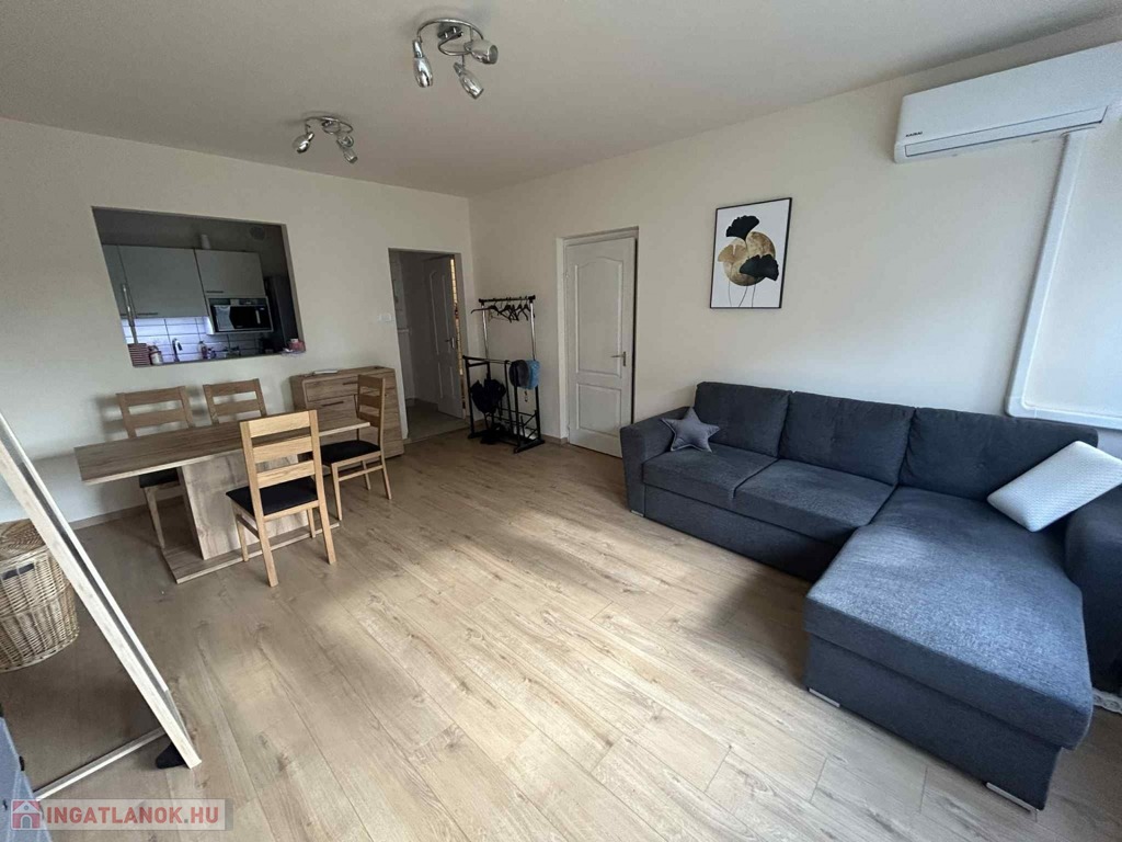 A lakást a meleg nyári napokon klímaberendezés hűsíti.