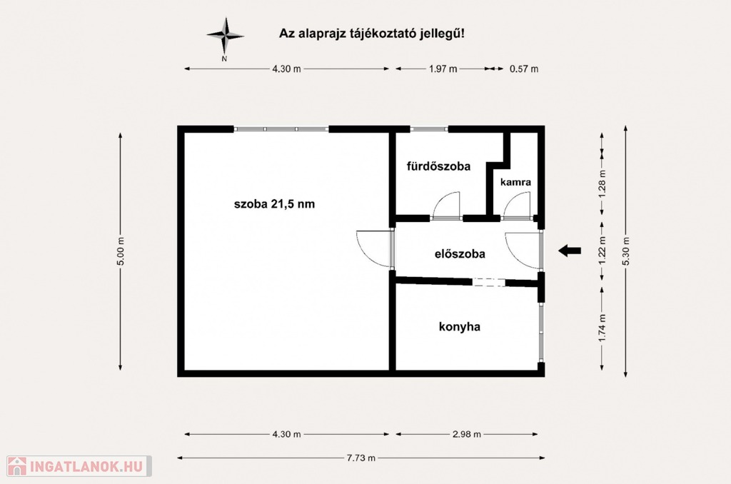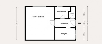 Az ingatlan egy 21,5 nm-es világos nappalival, különálló, ablakos konyhával rendelkezik. Az előszobából egy praktikus kamra nyílik, ahol minden szükséges eszköz kényelmesen elfér. A fürdőszoba kádas kialakítású, itt kapott helyet a toalett is.