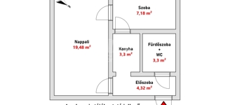 A lakás praktikus elrendezésű: előszoba, egy nagyszoba, egy félszoba, konyha, fürdőszoba + WC, valamint egy külön tárolóhelyiség használata is tartozik hozzá.