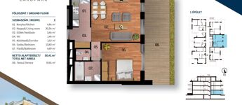 Alapterülete 50,41 m2 + 9,89 m2 terasz.
