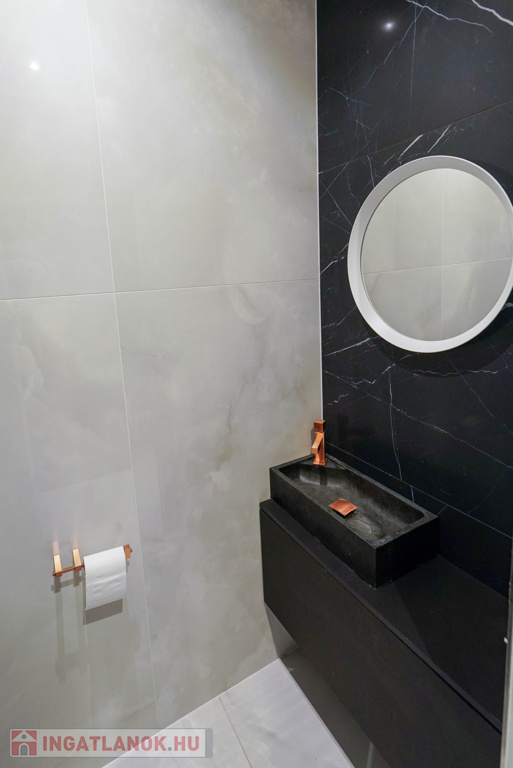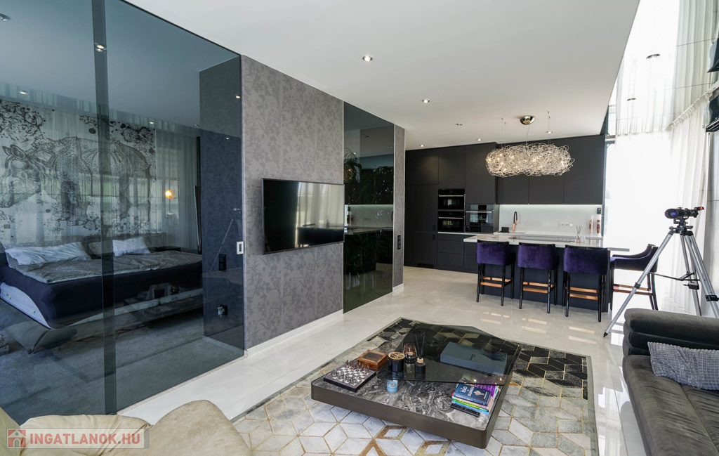 - Különleges onyx térelválasztó a hálószoba és a fürdő között.