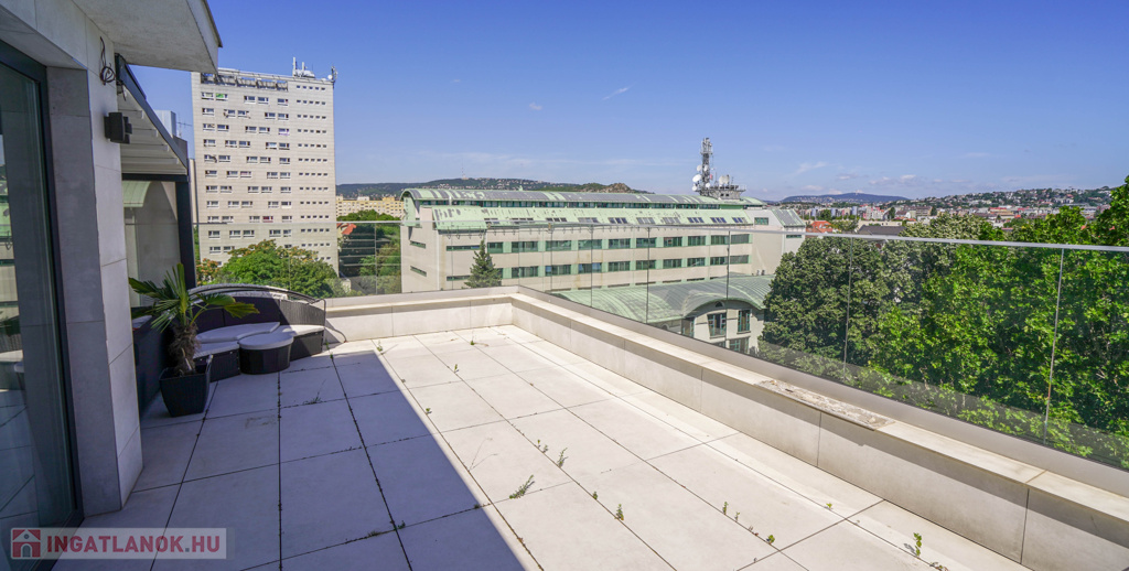 - 6. emeleti, nem tetőtéri lakás közel 80 m²-es terasszal, jakuzzival és városi panorámával.