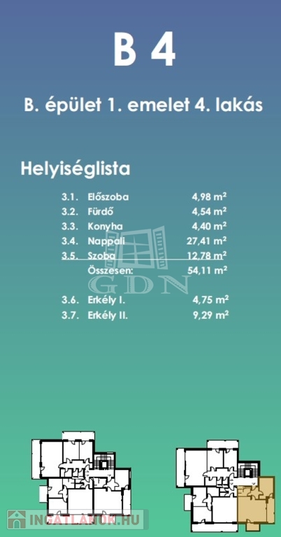 49, 54, 71, 80 nm2 méretű ingatlanok közül lehet választani. Földszinti lakások saját terasszal és kertrésszel míg az 1. és 2. emeleti lakások nagy teraszokkal rendelkeznek.