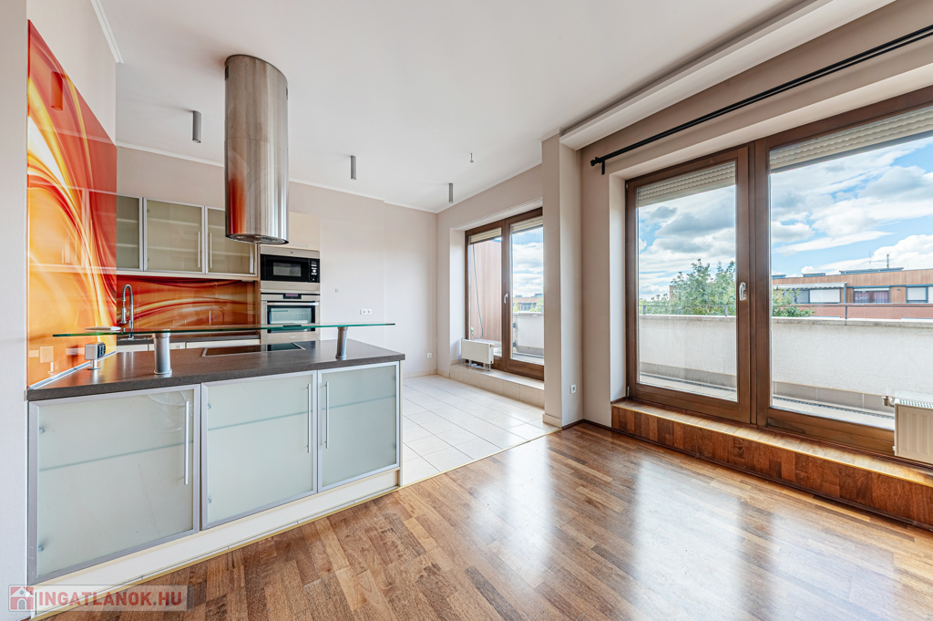 A lakás különlegessége, hogy két egymással megegyező méretű (2 x 45 nm) hatalmas terasz öleli körbe a nappalit és a hálószobákat, növelve a tér és komfortérzetet!
