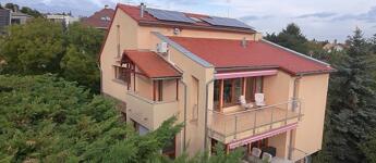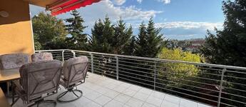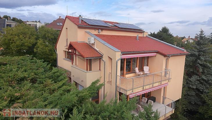 A nappaliból nyílik egy 12 nm-es délnyugati fekvésű, félig fedett, motoros árnyékolóval ellátott terasz, ahonnan gyönyörű panoráma tárul elénk. Illetve az egyik hálószobában kialakításra került még egy oldalsó, keleti fekvésű 2 nm-es erkély.
