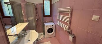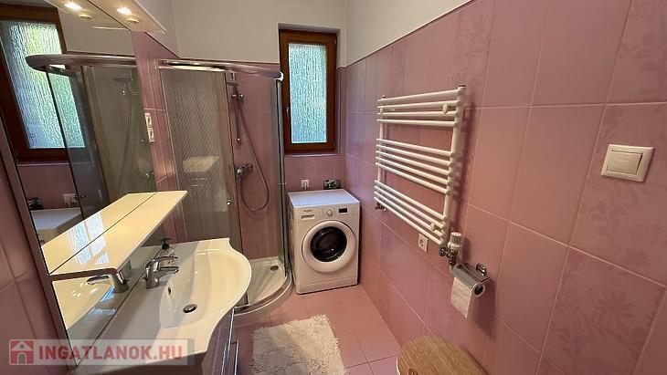 Ezen kívül van még egy 4,5 nm-es fürdőszoba, illetve egy konyha, amely jelenleg egy légtérnek érződik a nappalival, de igény szerint ezt tovább lehet szeparálni. A konyha beépített, gépesített: főzőlappal, sütővel, kivezetett páraelszívóval és mosogatógéppel van ellátva.
