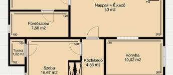 A hatalmas 30 nm-es nappalin kívül 3 szoba került kialakításra. A legnagyobb egy 17 nm-es, melyhez különálló erkély tartozik, a középső egy 15 nm-es szoba, amelyből egy tágas fürdőszoba nyílik, a legkisebb szoba pedig 7 nm, amely akár dolgozóként, akár hálószobaként is funkcionálhat.