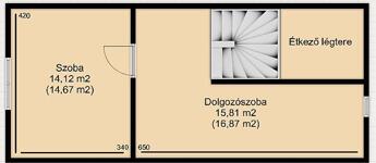 Található még lent egy saját 23 nm-es tároló/ garzonlakás, melynek ára 15 M Ft. Ez jelenleg egy lakható kislakásként üzemel, ugyanis egy 4 nm-es fürdőszoba is kialakításra került benne. Külön megközelíthető, így a jövőben ennek a kiadása is opció lehet.