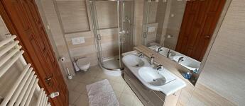 Ezen kívül a piceszinten található a két beállásos garázs (36,5 nm), melyből az egyik beálló a lakáshoz megvásárlandó. Ára 10 M Ft. Ezt a ház mellett futó, fűthető lehajtóról lehet elérni autóval.