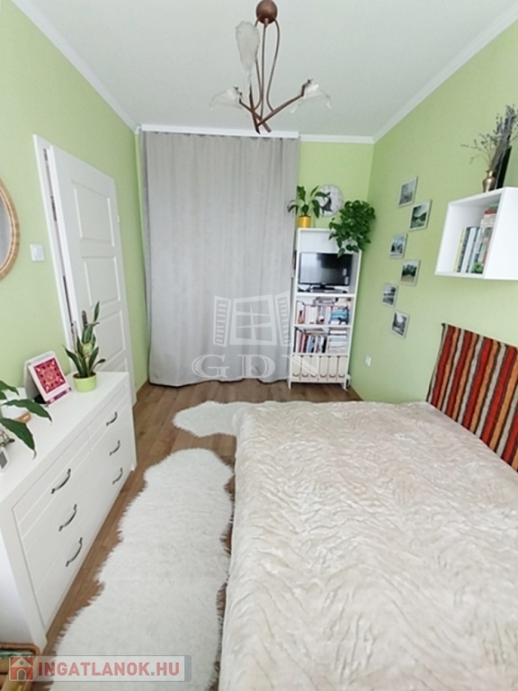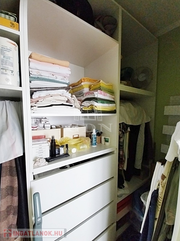 A nappali szobából lehet átlépni a 12.8 nm-es hálószobába, a hálószobához kapcsolódik a 2 nm-es gardrób tároló helyiség.