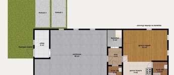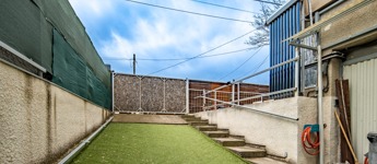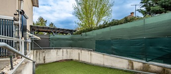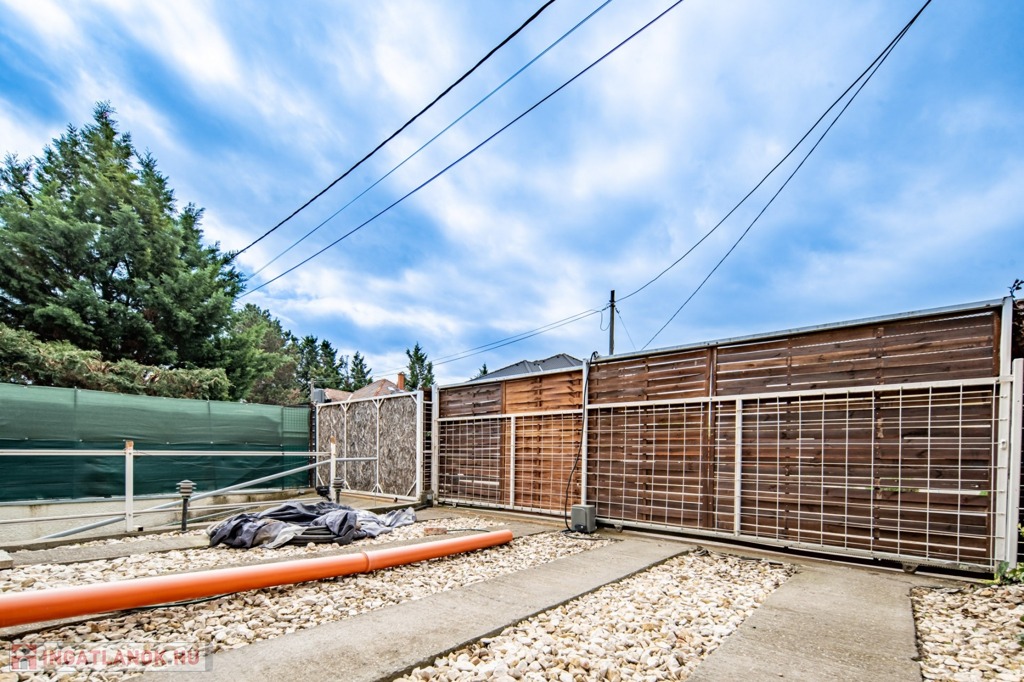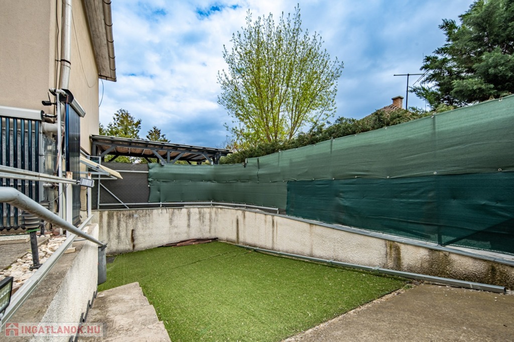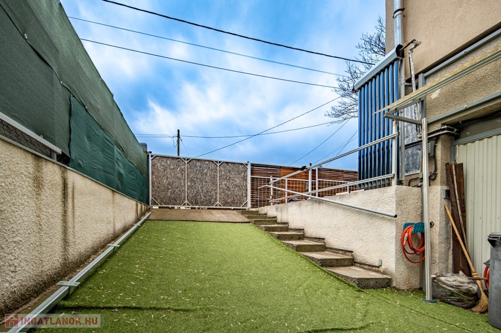 Az ingatlanhoz 75 m2 kertkapcsolat jár, melyből egy az eredeti pinceszinthez autólejárat (jelenleg gyalogoslejárat), kettő pedig kültéri beállóhely. Az összesen három autókapuból kettő elektromos, egy kézzel nyíló. A közös költség 8480 Ft, a víz és a villany is egyedileg mért.