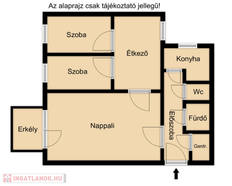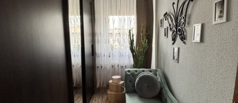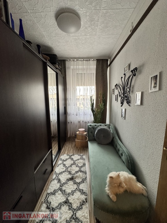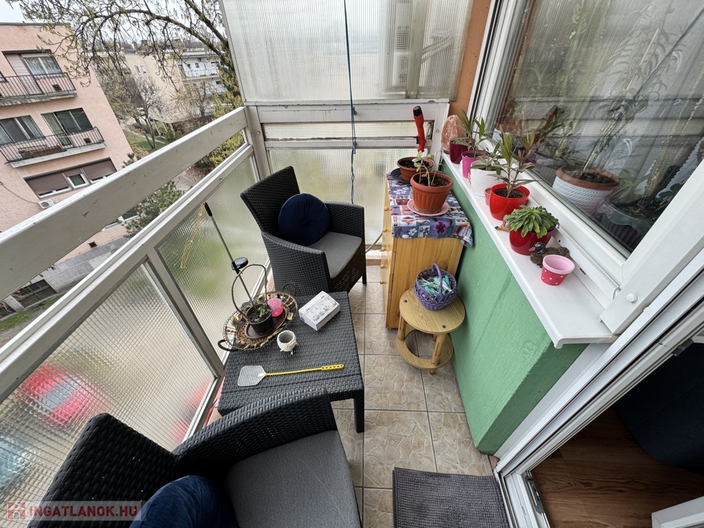 Az ingatlan praktikus elrendezésű, külön étkezővel és gardrób helyiséggel is rendelkezik, így kényelmes és jól kihasználható életteret biztosít. A lakáshoz egy 4 m²-es erkély is tartozik, amely kellemes lehetőséget nyújt a pihenésre.