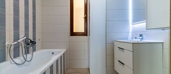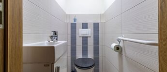 Külön WC kézmosóval, dekoratív LED világítás, árnyékolók és spaletta
