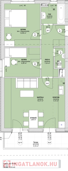 Hasznos alapterület összesen: 56,75m2