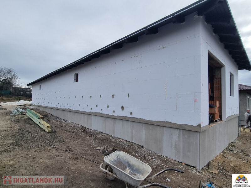 - műszaki tartalom: fűtés, hőszivattyú + padlófűtés minden helyiségben, 3 rétegű műanyag nyílászárók, 15 cm-es homlokzati dryvit szigetelés, duplakomfort,