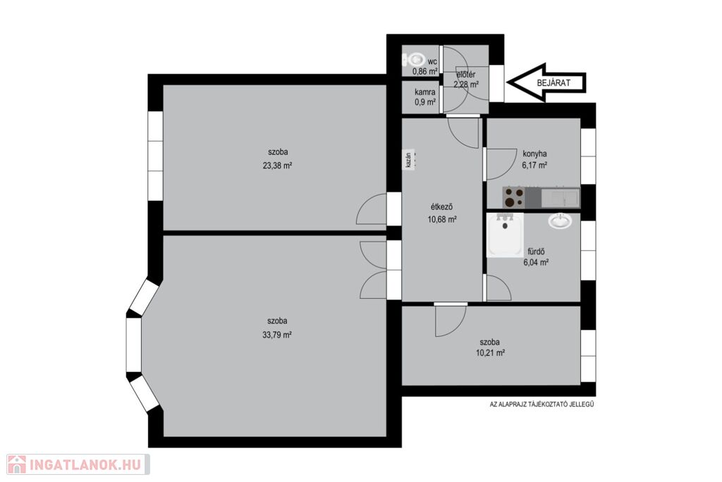 Elosztása szerint: 1 hatalmas nappali, 1 nagyméretű szoba, 1 félszoba, konyha, étkező, fürdőszoba, wc, kamra, előszoba, helyiségekből áll. Az ingatlan átlagos állapotú, de számos lehetőséget rejt magában, hogy saját ízlésére formálja. A régi nagypolgári lakásokban talán az a legizgalmasabb, hogy ízlés szerint formálhatók szinte bármilyen stílusúra, a lofttól a klasszikusig, a minimáltól az eklektikáig bármi szóba jöhet. Így ez is tökéletes megoldást kínál azok számára, akik értékelik a klasszikus stílust, a központi fekvést és a kényelmet.