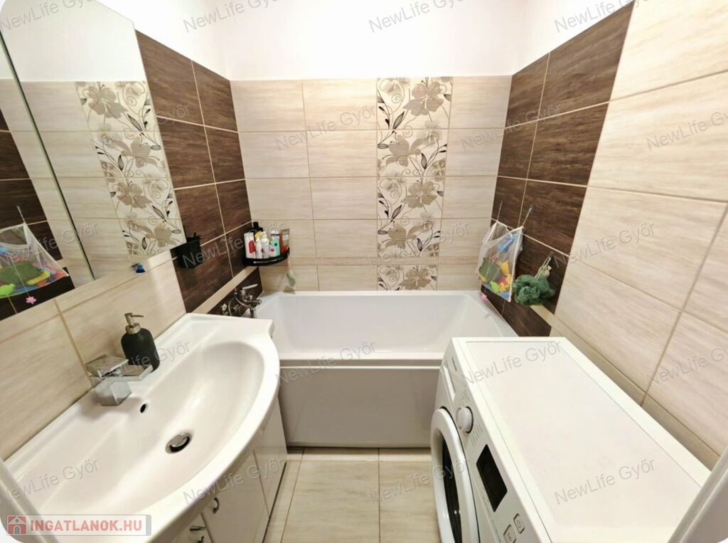 A felújítás során új mosdó, és fürdőszoba lett kialakítva.