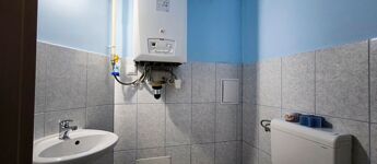 A fűtést saját gázkazán biztosítja radiátoros hőleadással.
