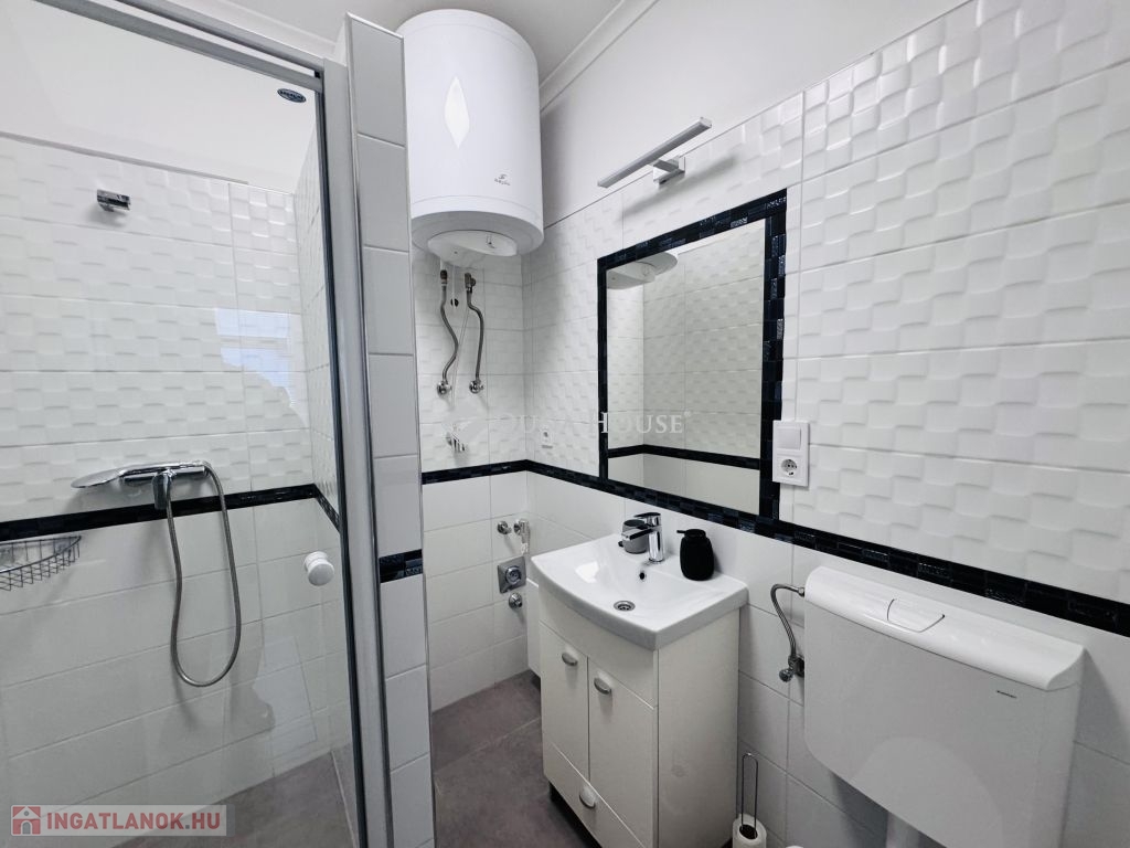 Harkány csendes, rendezett részén, egy háromlakásos társasház földszintjén kínálom megvételre ezt a teljes körűen felújított, kertkapcsolatos lakást, teljes berendezéssel. Az ingatlan minden részlete gondosan megtervezett és karbantartott, a felújítás után gyakorlatilag új állapotban várja leendő tulajdonosát. A lakás fűtése energiatakarékos klímával megoldott, a nyílászárókra elektromos redőnyök és szúnyoghálók kerültek. A ház külső homlokzata 5 cm szigeteléssel, a tető pedig 15 cm kőzetgyapottal ellátott, ami kiváló hőszigetelést biztosít. A lakás teljes bútorzattal és felszereléssel kerül átadásra: a TV, bútorok, háztartási eszközök és minden berendezési tárgy a vételár részét képezi, így az ingatlan akár azonnal költözhető vagy kiadható. A ház előtt egy, akár két autó számára is kényelmes parkolási lehetőség biztosított.Kiváló választás állandó lakhatásra, nyaralónak vagy befektetési célra egyaránt.