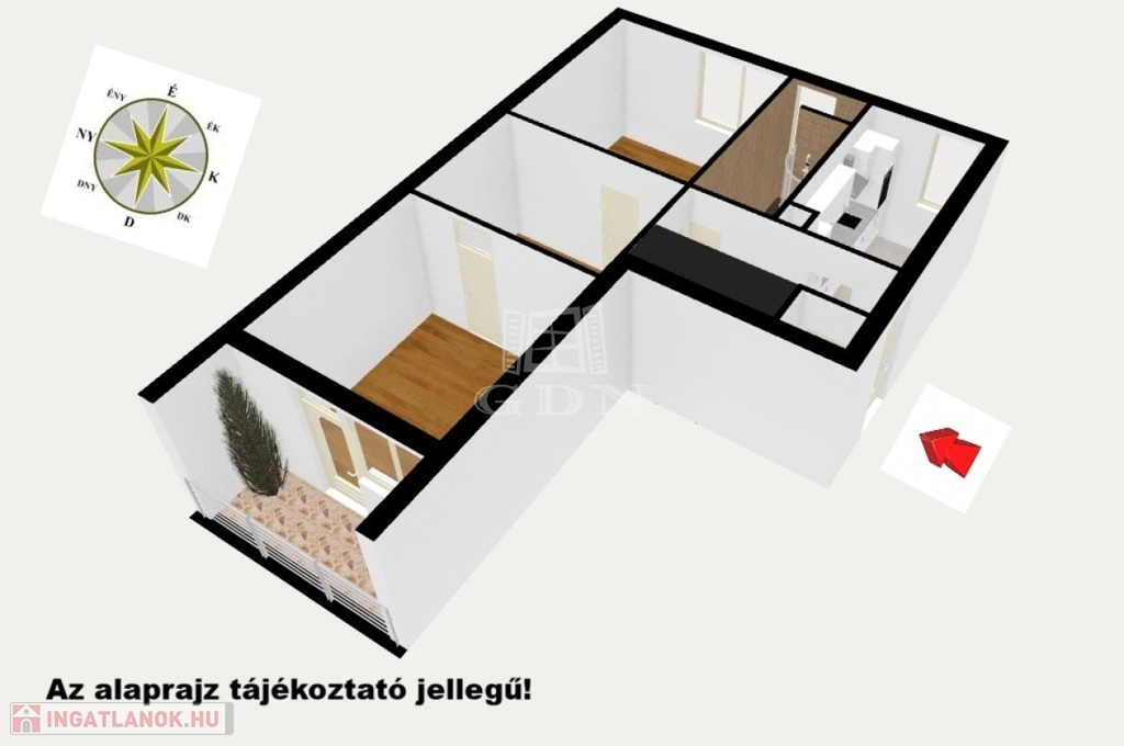 - 2 SZOBÁS elrendezés, 55 m²