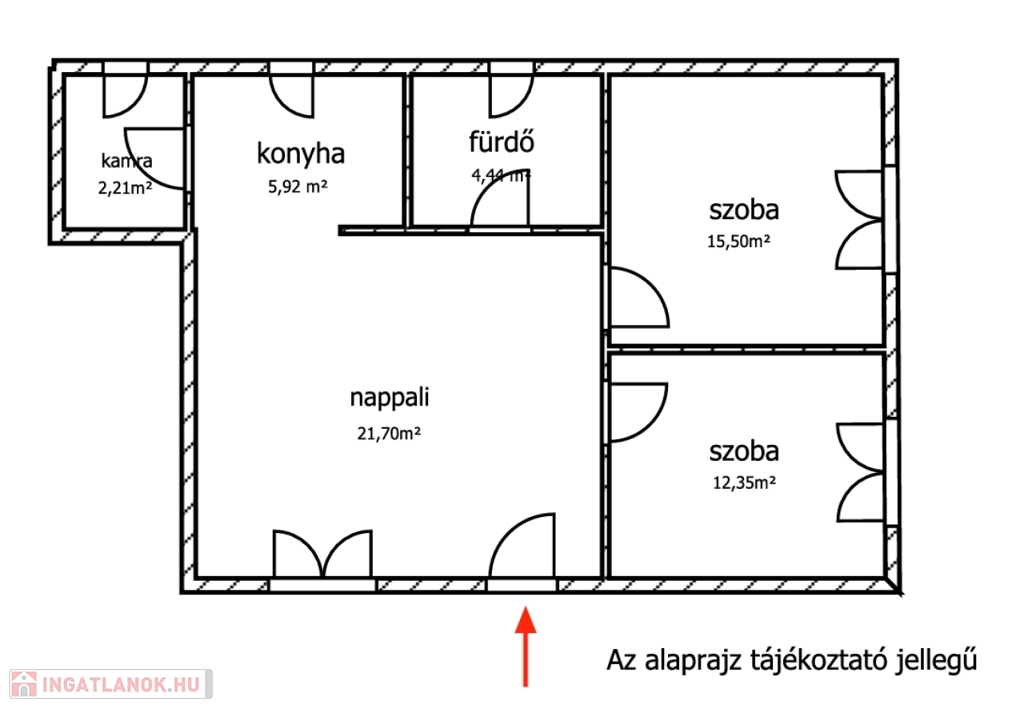 Ez a lakás az utcafronttól az utolsó a házban, így megfelelő priátszférát biztosít az ottlakóknak.