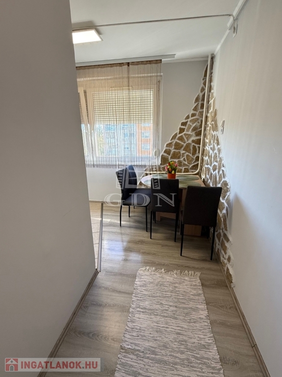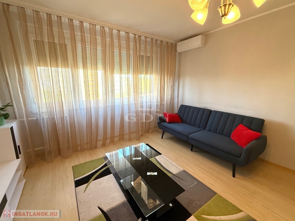 Kecskemét, Széchenyivárosban, liftes társasház 5. emeletén, 55 nm, 2 szobás, felújított lakás eladó. Az ingatlan 3 éve lett felújítva, új konyhabútor, biztonsági bejárati ajtó, ablakok cseréltek, redőnnyel és rovarhálóval felszerelve. Fenntartása alacsony költségekkel bír, távfűtéses, egyedi mérővel ellátva, hűtő-fűtő klíma beszerelve. Kiváló elhelyezkedés, bevásárlási lehetőségek (Lidl, Spár, Univer, kispiac), orvosi ellátás, bölcsőde, óvoda, iskola, buszmegállók gyalogosan 5 percnyi távolságra. Parkolás ingyenes. A lakás tehermentes, azonnal birtokbavehető, a fotókon látható gépekkel, bútorokkal együtt.