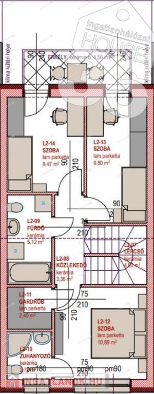 lakás: 97,01 m2, terasz: 19,10 m2, erkély: 4,56 m2