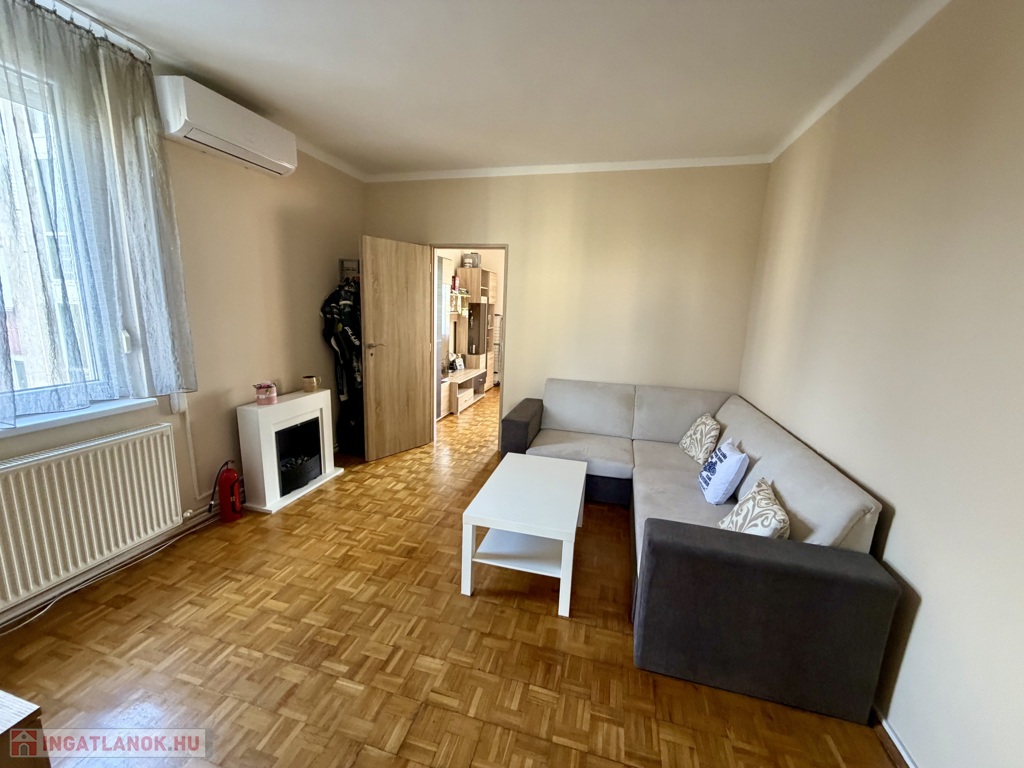 A társasház szigetelt, a fűtés pedig saját gázkazánnal történik, ami az alacsony rezsi egyik záloga. A burkolatok részben megújultak, jó állapotúak, a fürdőszoba modern, tusolós kialakítású, és az idei évben beszerelt, új hűtő-fűtő klíma is a lakás.