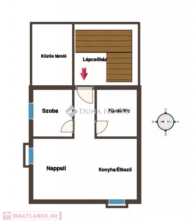 A lakáshoz 1db közös tároló valamint 2db gépkocsibeálló tartozik!