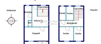 A felső szinten van 3 hálószoba, egy fürdőszoba és egy közlekedő. A fűtése új kondenzációs gázkazánnal megoldott, valamint az alsó szinten egy vízteres cserépkályha van, ami a teljes ház melegét biztosítja, mert a radiátorokat is lehet fűteni vele. De a felső szinten egy klíma is biztosítja a komfortos hőérzetet télen-nyáron.