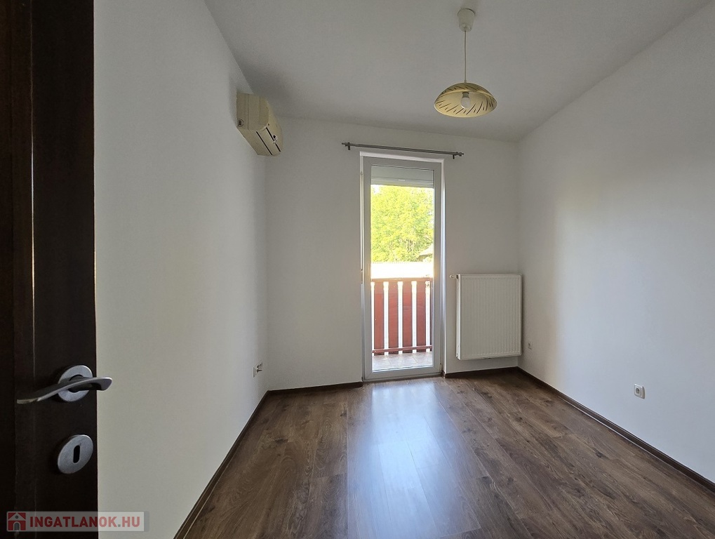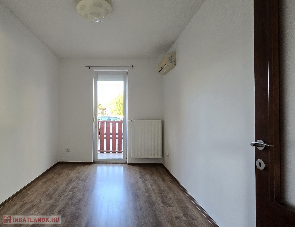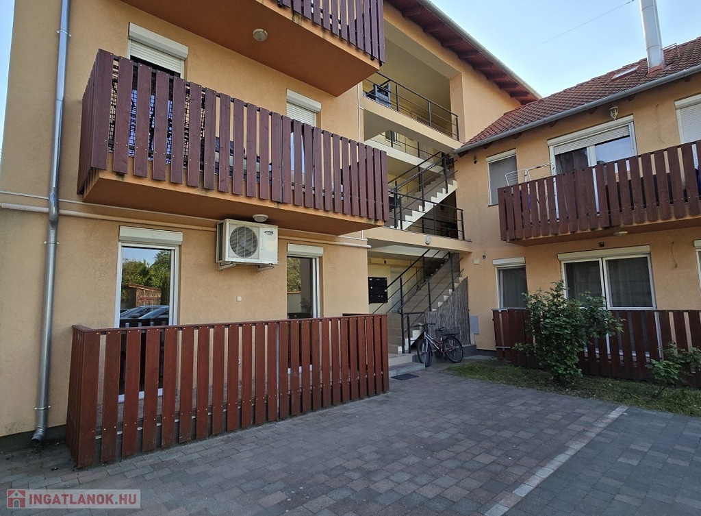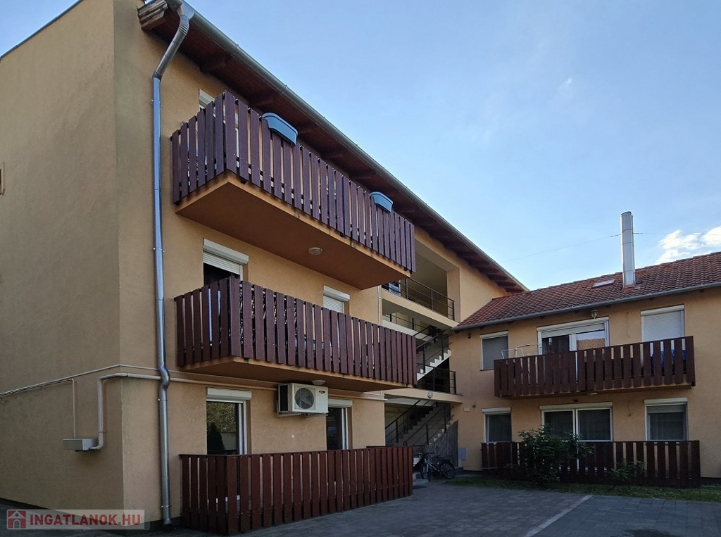 A 8 lakásos társasház 2009-ben épült téglából, szigetelt, műanyag nyílászárókkal, az ablakokon redőnnyel és szúnyoghálóval.