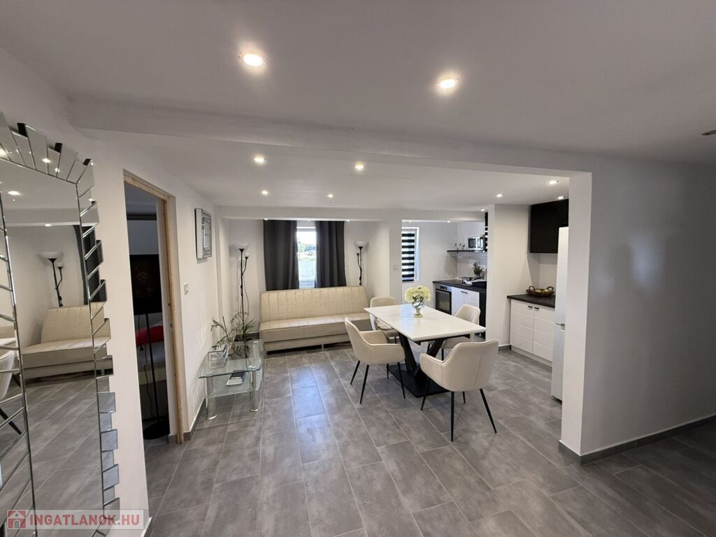 Mosonmagyaróvártól mindössze 4km távolságra Mosonudvaron eladó egy nettó 70m2-es, nappali + 2 hálószobás lakás, amely egy 2024-ben épült kétlakásos társasház részét képezi. A társasház másik része egy 5 db miniapartranra osztott házrész, amely szintén megvásárolható akár bérbeadásra, de saját használatra is, mivel a válaszfalak könnyedén alakíthatók. A társasházhot tartozikm egy 100m2-es közös udva illetve közös használatú pince.