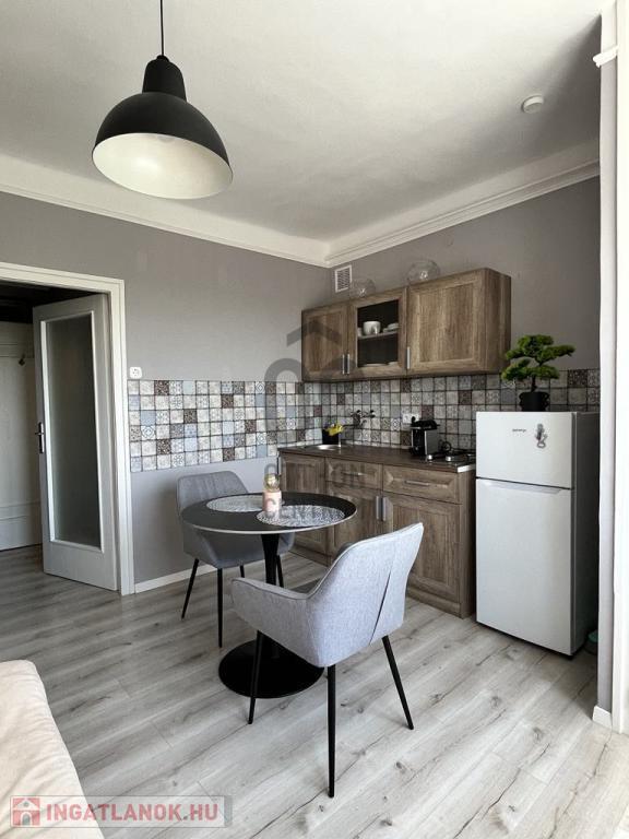 Ez a 3. emeleti lakás, bár csak egy különálló szobával rendelkezik, mégsem kell lemondani semmilyen élettérről! A tágas konyha-étkező biztosít egy társalgót is. Itt akár egy vendéget is el tudunk szállásolni.