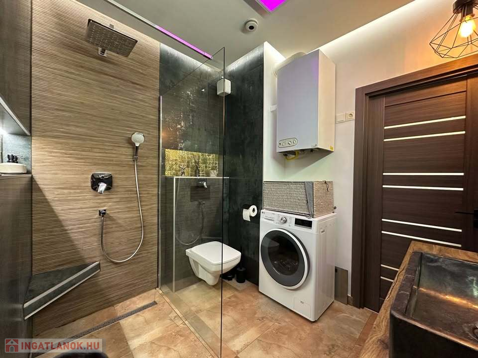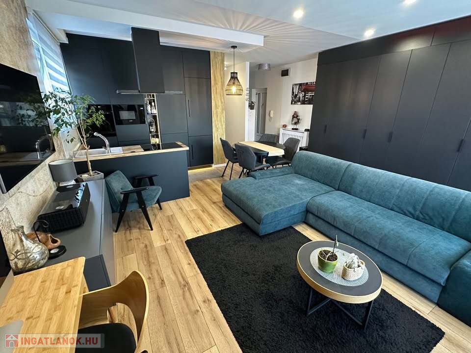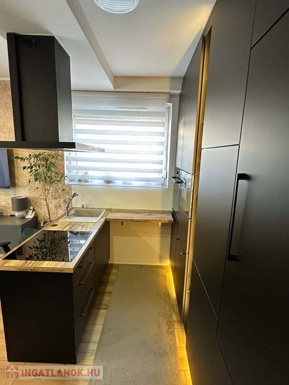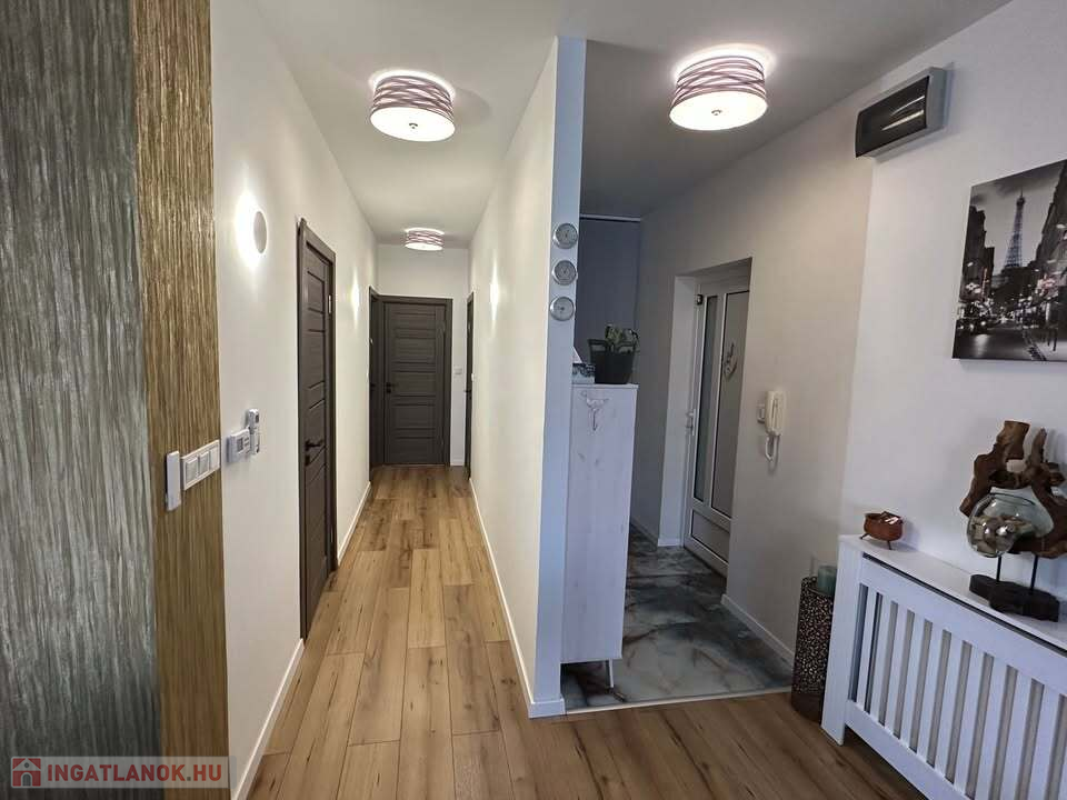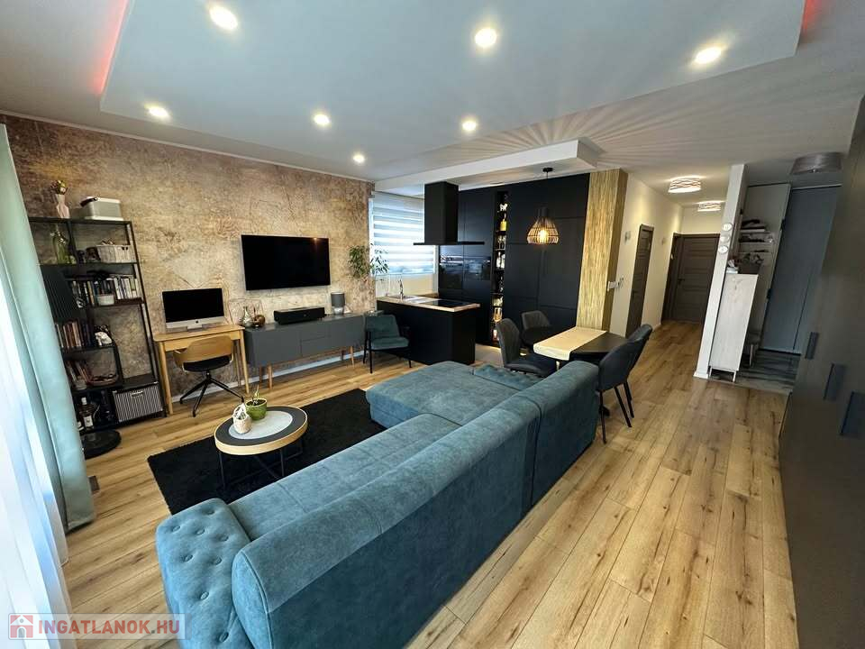 2020-ban teljes körűen felújított,nappali + 2 szobás, nagy erkélyes (10 nm),66 nm-es,egyedi gáz-, padlófűtéses,klimatizált,újszerű, egyedi, beépített, gépesített konyhabútorral,laminált padló és járólap burkolatú,műanyag nyílászárós,